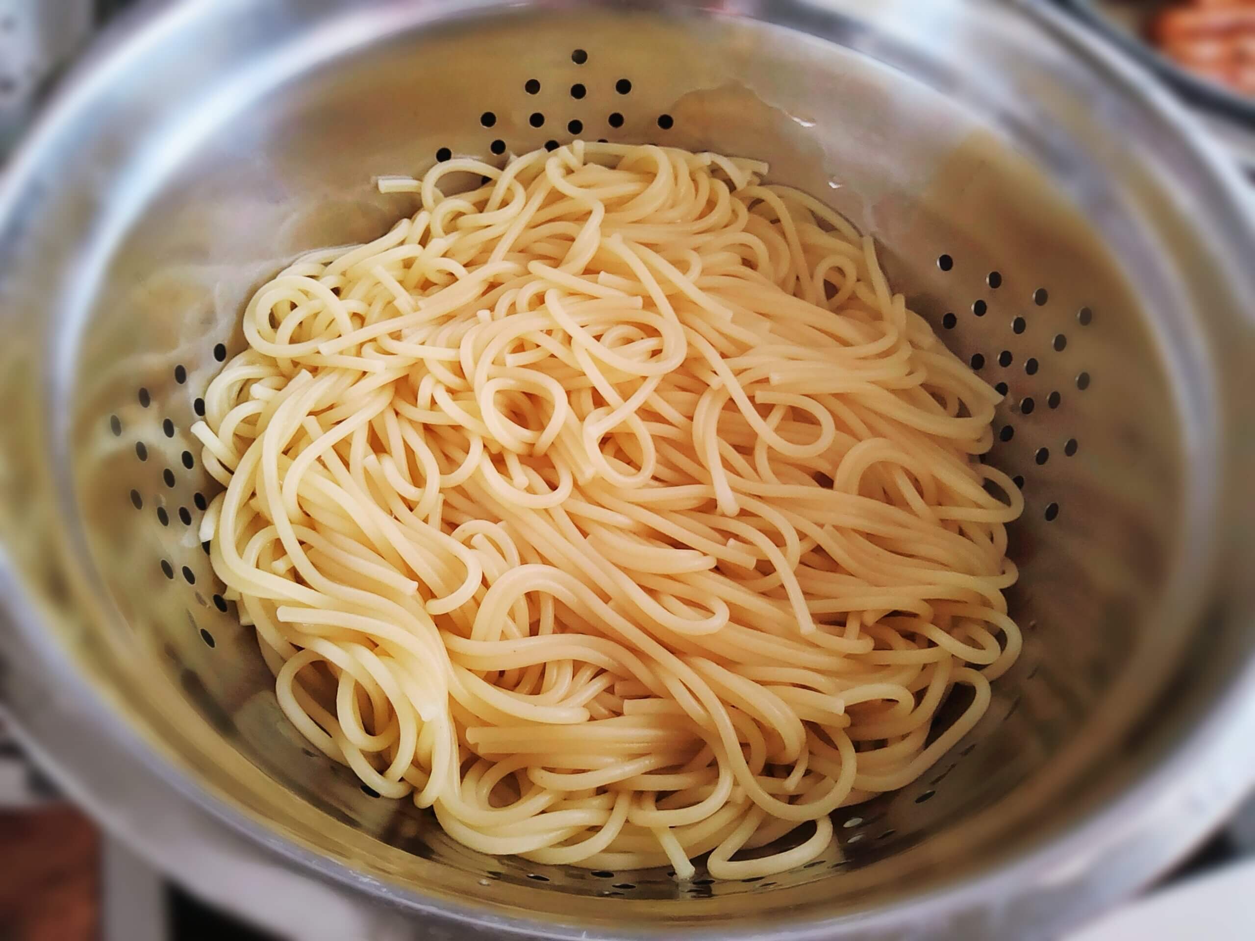 - Закип’ятити воду, добре посолити, відварити макарони до стану аль денте (дивіться вказаний час на упаковці), злити воду, залишивши півсклянки.